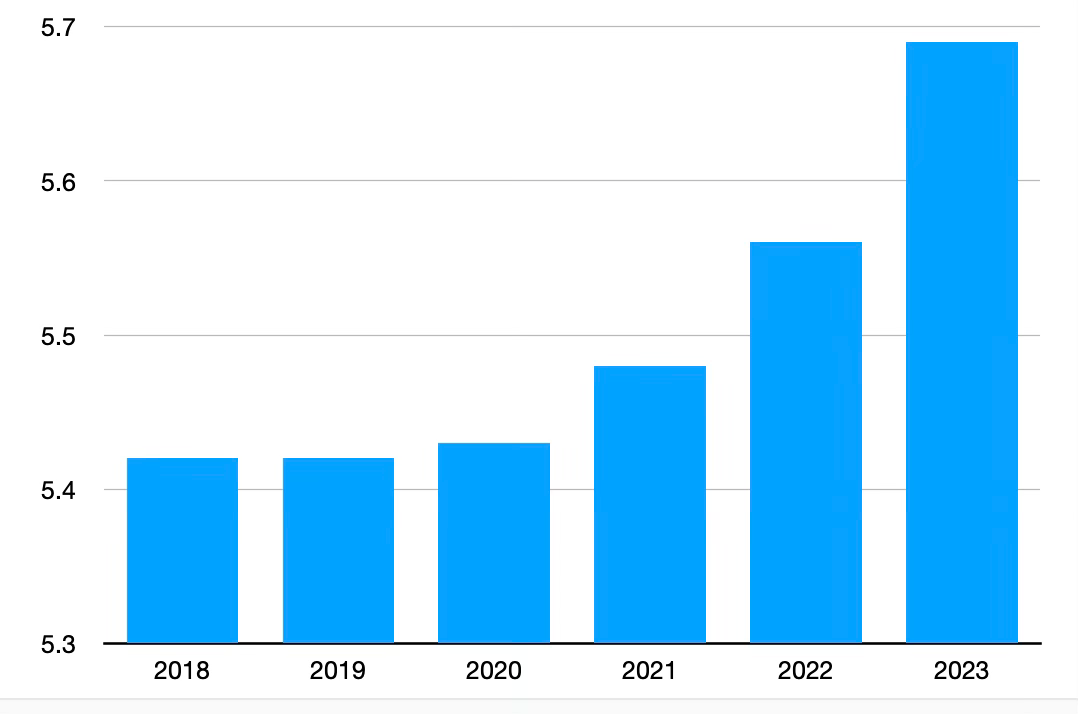 In 2023 there were 5.69 cancers per 1,000 population compared to an average rate during 2015 to 2019 of 5.27. That is a 7.9% increased rate of cancer occurrence. There were 4509 more cancers in 2023 than the average for 2015-2019. This rise was not solely due to the effect of our ageing population. The cancer rate for 65+ remained constant, but new cancer registrations per 1000 population for the 45-64 working adult age range rose by 8% when compared to the pre-pandemic 2015-2019 average. This bucked a ten year pre-pandemic trend that held to a more or less constant rate.